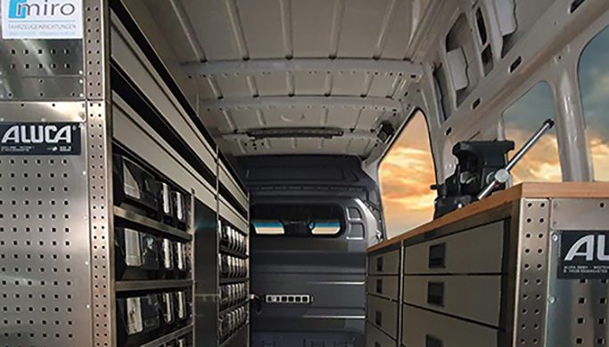 Zu diesem Zweck wurde in diesem Fall der Laderaum des Mercedes Vito mittels einer Trennwand zweigeteilt.