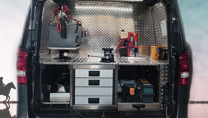 Ein Hufschmied benötigt für seine Arbeit vor Ort eine maßgeschneiderte Fahrzeugeinrichtung.