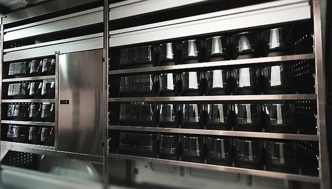 Laborfahrzeuge stellen generell höchste Anforderungen an die Innenausstattung: hochempfindliche Präzisionsgeräte, EDV, abtrennbare Reinräume, Stromanschlüsse, Beleuchtung, Wand und Deckenverkleidung sowie Klimaanlagen müssen auf engstem Raum und gemäß hohen ästhetischen Ansprüchen im Fahrzeug realisiert werden.