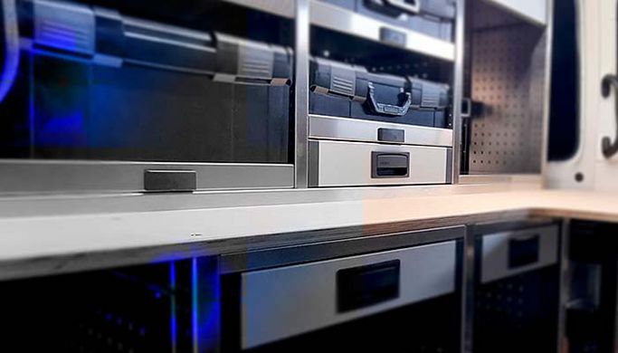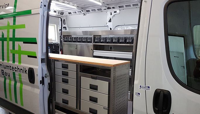 Mit einer Fahrzeugeinrichtung von miro schaffen Sie perfekte Ordnung und viel Stauraum an Ihrem mobilen Arbeitsplatz. So gestalten Sie Ihre Arbeitsabläufe effizienter und gewinnen Zeit. Die Einrichtungssysteme bestehen aus beliebig miteinander kombinierbaren Modulen unterschiedlicher Breite, Höhe und Tiefe, die extrem leicht und gleichzeitig enorm stabil sind. Das spart Treibstoff, ist gut für die Umwelt und schont Ihren Geldbeutel.
